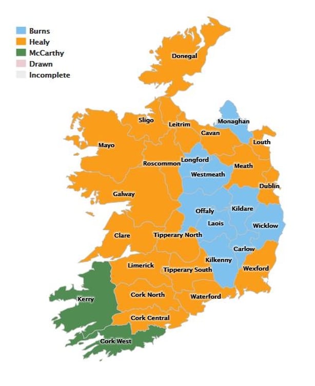 John Coughlan was elected Munster chairperson, ahead of John O'Brien in second place.