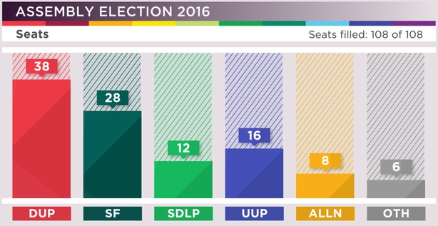All 108 seats have been filled in the Northern Ireland Assembly election, with the Democratic Unionists once again emerging as the region's largest party.
