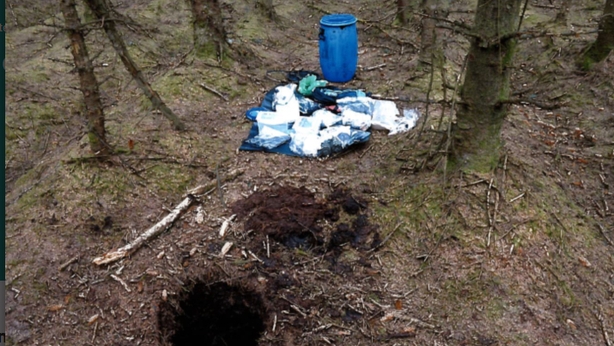 Several pipe bombs, magazines and ammunition for an assault rifle as well as bomb component parts and command wires were also concealed in barrels in purpose-built holes in woodland.