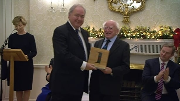 Also honoured posthumously this evening was the late Terry Wogan. President Higgins paid tribute to the wit, sensitivity and empathy of his broadcasting which he said he did during some very challenging times for the Irish community in Britain.