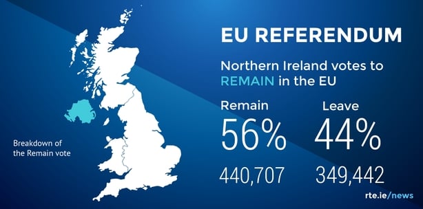Constituencies which voted to remain included Foyle, West Tyrone, West Belfast, South Belfast, North Belfast, North Down, East Derry, South Down, Mid Ulster, Fermanagh and South Tyrone, Newry and Armagh.