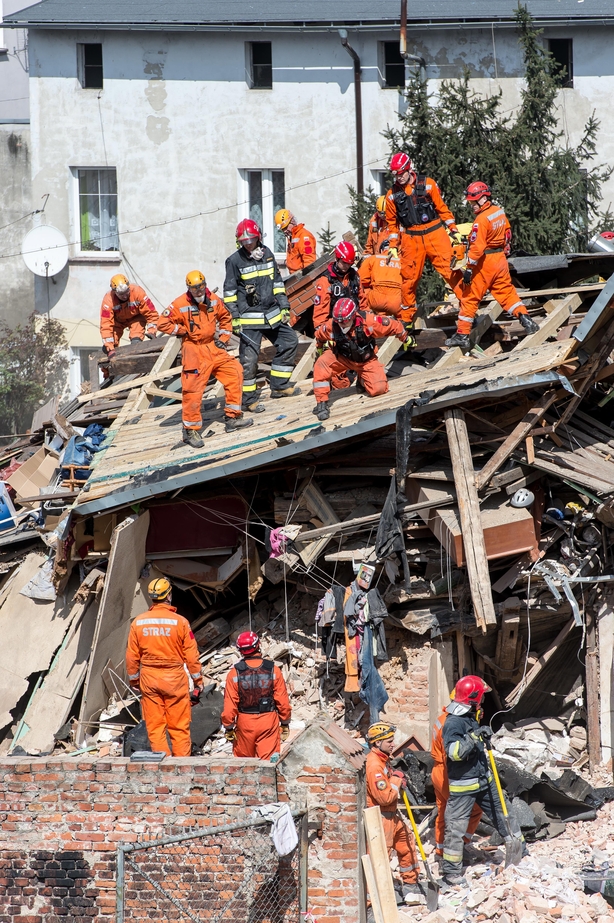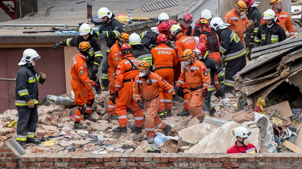 Four others were injured and rescued from the rubble, in the town of Swiebodzice, before being rushed to hospital.