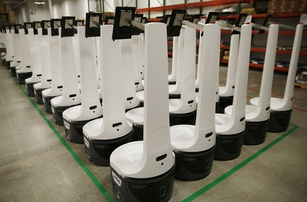 Then, there are collaborative warehouse robots (Cobots) which look like a motorised stool with shelves and touch screens. They have sensors and work in groups navigating their way around a warehouse similar to humans. They are loaded with software connecting the inventory management data with the warehouse management system.