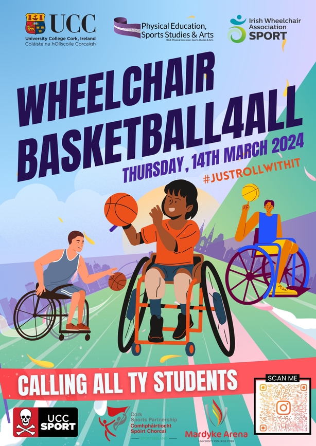 Over 500 students are about to experience what wheelchair basketball is all about. Drawn from 32-schools across Cork, Limerick, Tipperary, Waterford and Kilkenny, 500 transition year students are set to attend this year's Wheelchair Basketball4All event at Cork's Mardyke Arena this week.