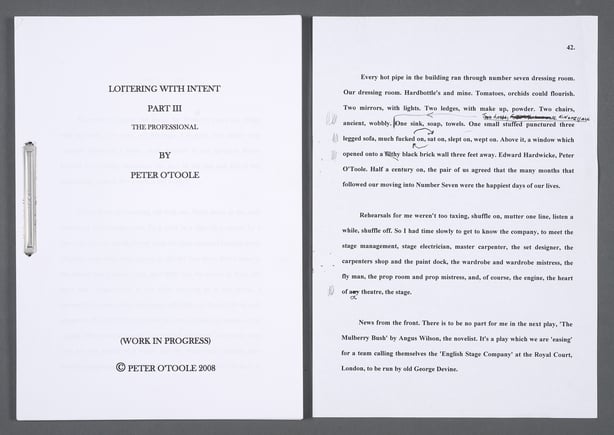 This rich and varied collection of memorabilia includes letters, scripts, audio recordings and photographs, as well as the unpublished third volume of his memoirs, Loitering With Intent.