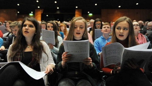 More than 1000 voices from 31 choirs and 19 counties from Cork to Donegal joined with the full forces of the RTÉ National Symphony Orchestra and conductor David Brophy to perform One Hundred Years a Nation, which was narrated by poet Paul Muldoon. Some of the choirs were formed especially for the occasion; the singers ranged in age from 9 to those of senior citizen age, and all participating choir directors had worked closely with conductor David Brophy in advance of their individual rehearsals at local level.