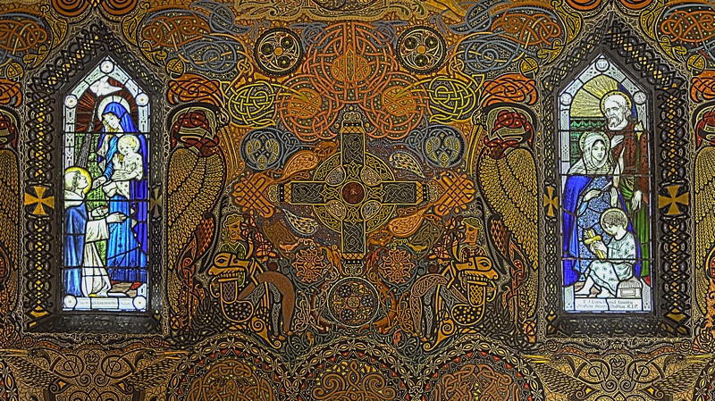 It commemorates the many local Irishmen who fought and died in the Great War. From 1920-36, it was hand-painted by Sr Concepta Lynch, a Dominican nun at St. Mary's and the result is a stunning example of the Celtic Revival style.