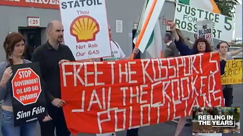 Watch: RTÉ News report as the Rossport 5 are jailed on 29 June 2005. (RTÉ Archives)