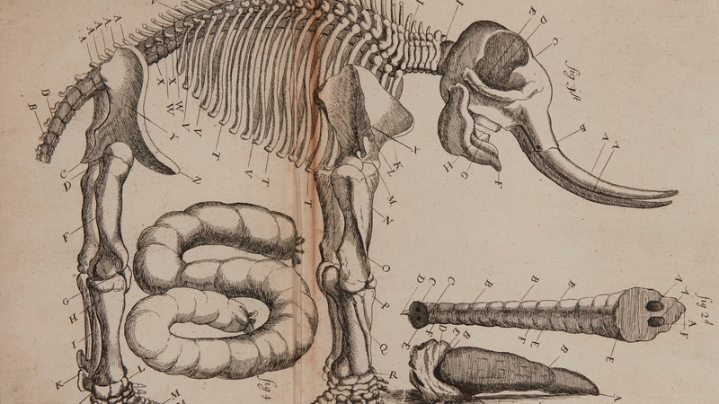 There is a specifically Dublin flavour to the exhibition. We wanted to show the animal that was on display to the public in Temple Bar in 1680s. After she died, Dr Allan Mullen from Trinity College dissected the body and published the first scientific account of an elephant’s skeleton and anatomy (see image at top of article).