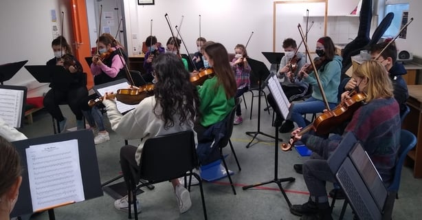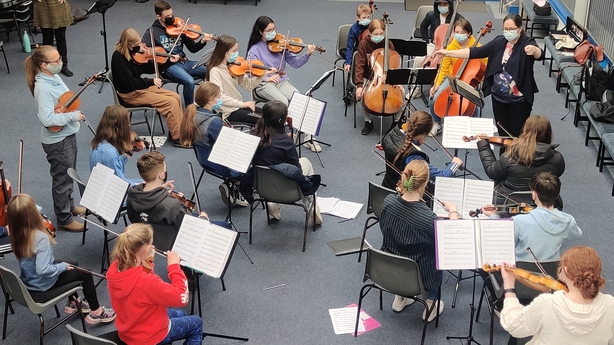 Whilst the chorus was rehearsing in Galway that day, in nearby Athenry the young string ensemble taking part, alongside the professional players, was getting to grips with the parts specially written for them by Elaine. Also rehearsing later that day was St Patrick’s Band, for the "cameo" moments in the opera where the ringing tones of brass instruments will signify the onslaught of Cromwellian forces on the city.