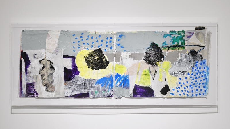 The titles reveal each painting’s own individual story. Echo from Time, is an outstanding example of a painting that has been worked on for over five years and has the bearing of a life lived. Most of these works are self-contained diptychs presented in clear Perspex boxes that allow us to fully appreciate the bold juxtapositions of colour, shape, texture and edges of these striking new works on paper.