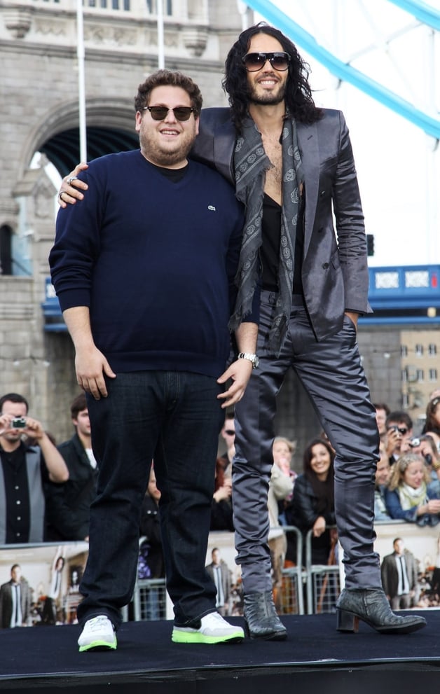 As we remember him - Jonah with Get Him to the Greek co-star Russell Brand only last year.
