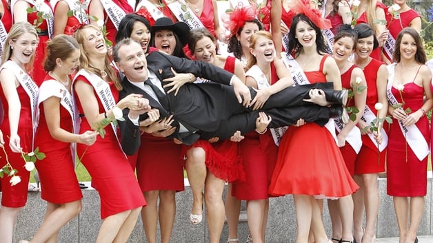 It must be a hard life being surrounded by 32 beautiful women, but Dáithí seems to be coping well.