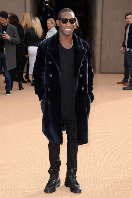 Tinie Tempah went for a similar look in an all-black ensemble consisting of a suede trench, jeans and biker boots, topping off the look with everyone's fashion week essential - dark sunglasses.