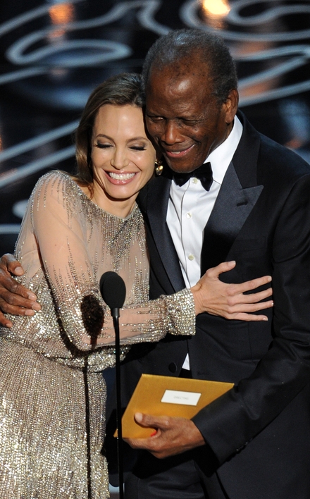 Angelina Jolie and Sidney Poitier took to the stage to present the Best Director award to Alfonso Cuaron for Gravity: