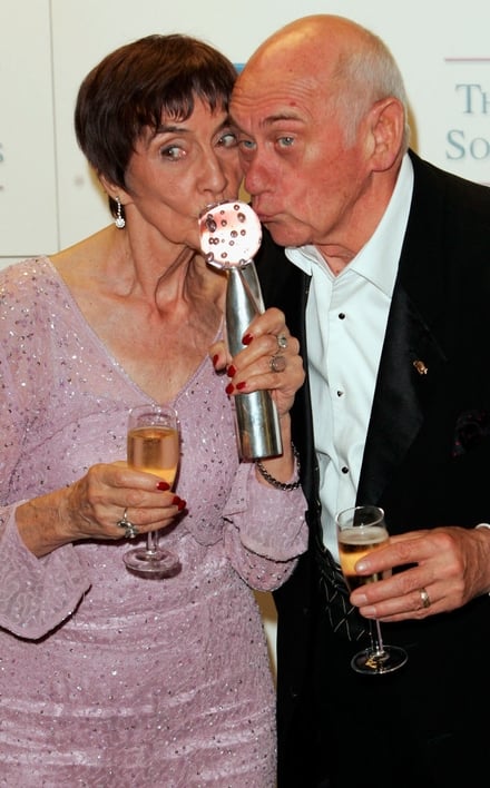 June Brown and John Bardon poses in the Pressroom with the prize Best on Screen Partnership at the British Soap Awards 2005.