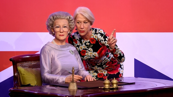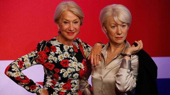 Actress Helen Mirren came face-to-face with three wax models of herself on Thursday when she visited a special exhibition at Madame Tussauds in London to celebrate her 70th birthday.