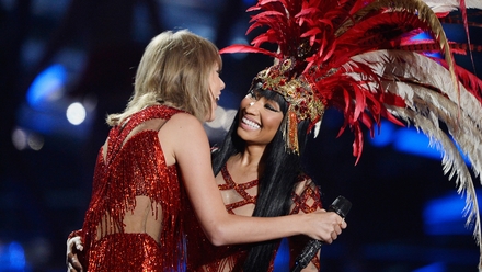 Swift put another beef - or some Bad Blood - behind her too, taking to the stage with Nicki Minaj following their Twitter spat earlier this year. Their duet of Minaj's The Night Is Still Young opened the awards show, with the pair sharing a hug on stage at the end.