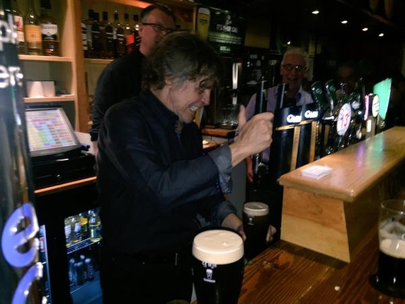 After a day's filming on Skellig Michael, Hamill went over to the darkstuff when he pulled pints in The Bridge Bar in the village of Portmagee during the week.