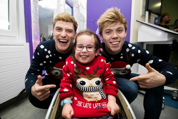 Irish boyband HomeTown dropped in to greet patients at the hospital and help model the Christmas jumpers which are on sale at Penneys stores nationwide or through the RTÉ website, with €2.00 for every sale going to Temple Street.