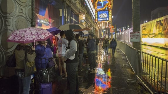 The movie was screened in Los Angeles' TCL Chinese Theatre, which was the location of the premiere of the original 1977 film Star Wars, The Dolby Theatre and the El Capitan Theatre.