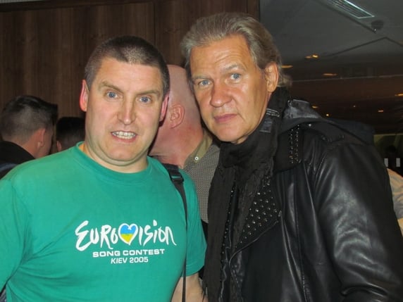 Author Mick Lynch pictured with two-time Eurovision winner Johnny Logan