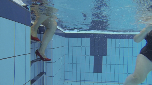 Comedian Katherine Lynch puts her best foot forward in the first episode of Celebrity Operation Transformation tonight by donning a pair of red heels for a swimming session with her fellow leaders.