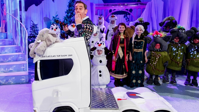 Look! Behind the scenes of The Late Late Toy Show set Updated / Thursday, 28 Nov 2019 17:08 Ryan Tubridy on the set of this year's Late Late Toy Show The most magical TV night of the year is upon us - hurray for the annual extravaganza that is The Late Late Toy Show! Take a look at these behind the scenes photos which reveal the theme of this year's Toy Show - the magical, mystical wonderland world of Frozen! Watch The Late Late Toy Show on RTÉ One on November 29 at 9.35pm, and from anywhere in the world with RTÉ Player.