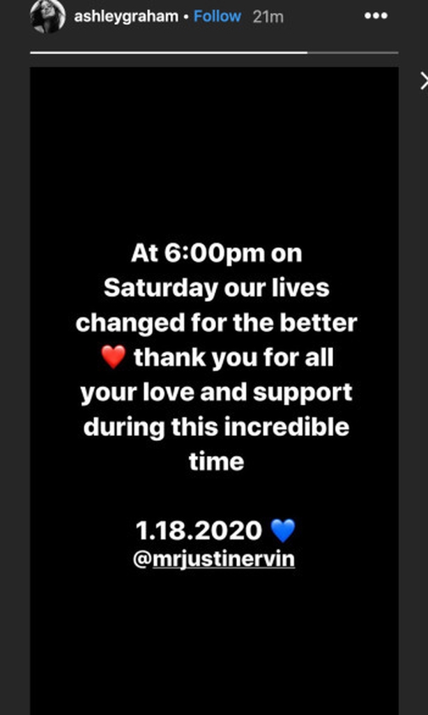 Taking to Instagram on Monday, Graham shared her happy news, writing: "At 6:00 p.m. on Saturday our lives changed for the better.