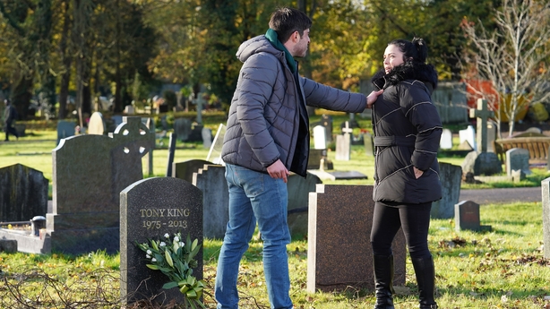 The BBC has released photos from the episode and says: "Wracked with guilt about Kush, Whitney takes matters into her own hands but is horrified when Leo takes her to Tony's grave and demands she apologise…"