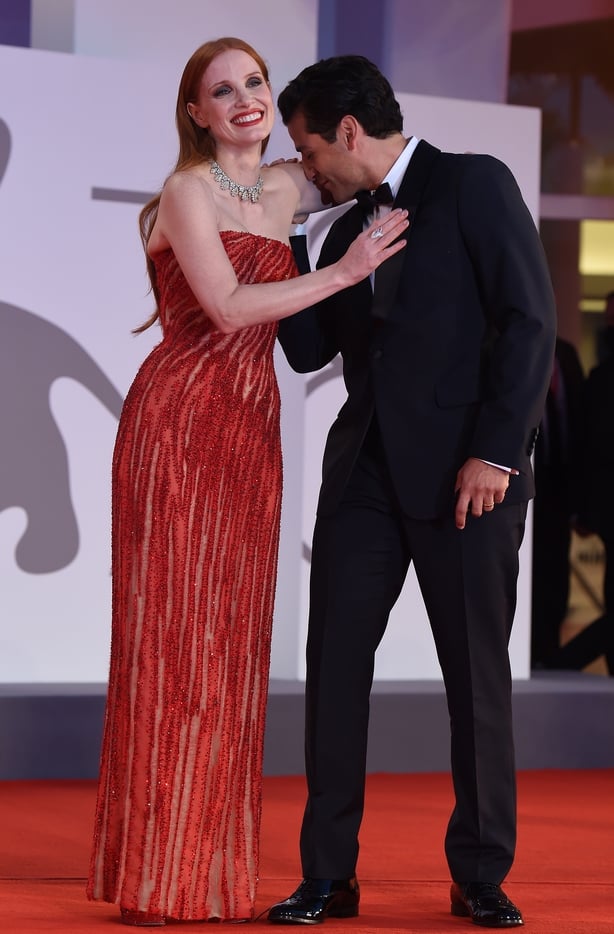 Jessica Chastain has explained a viral red carpet moment that occurred between her and Oscar Isaac at the Venice Film Festival.