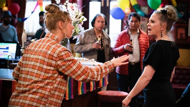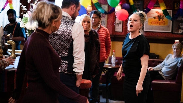Releasing photos, the BBC said: "Linda's return to Albert Square is off to a dramatic start and after causing a scene at the funeral, a drunk Linda can't hold her tongue and storms over to Tina's wake.
