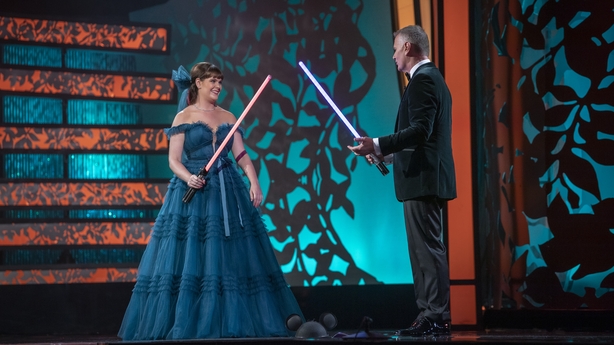 It is Kerry, the new home of Star Wars, so Florida Rose Jennifer Rose Waldeck challenged Dáithí to a lightsaber duel - then she was escorted offstage by an Imperial stormtrooper.
