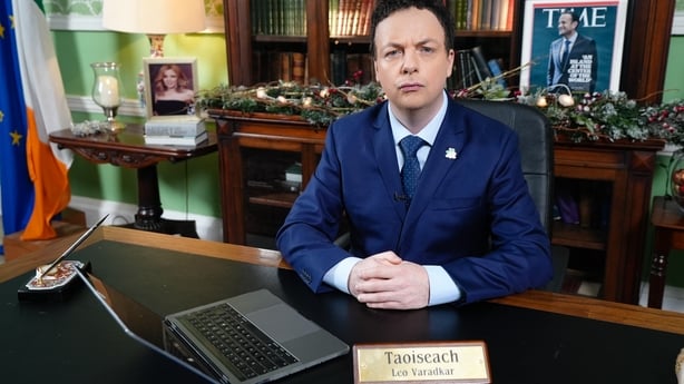 Oliver Callan’s character classics Leo, Micheál and Eamon return with Sinn Féin’s Mary Lou covering the political year from Robert Troy’s 11 gaffs to the rotating co-Taoiseachs. David McWilliams kicks the housing disaster and Dáithí Ó Sé hits the heatwave.
