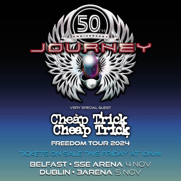 Journey and special guests Cheap Trick have announced that they will play shows in Dublin and Belfast in November as part of Journey's 50th Anniversary Freedom Tour.