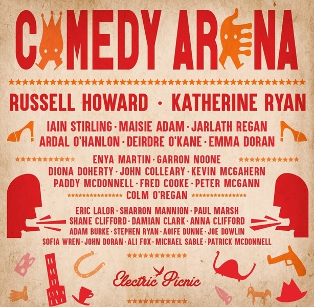 Russell Howard, Katherine Ryan, Ardal O'Hanlon, Deirdre O’Kane and Emma Doran are among the acts appearing at this year's Comedy Arena at Electric Picnic.