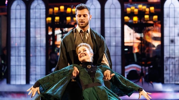 Welsh opera singer Wynne Evans and Katya Jones, danced the cha cha to Papa’s Got A Brand New Bag from Mrs Doubtfire, with Evans dressed as the title character, they scored 30.