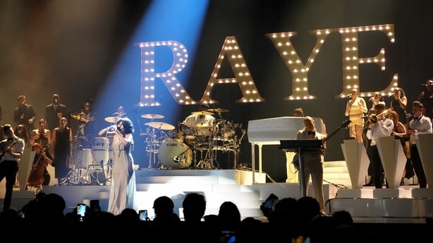 The London singer performed at the ceremony, accompanied by a 30-strong choir and 13-piece live band, with her name in lights behind them, while she sang her hits, Escapism, and Body Dysmorphia.