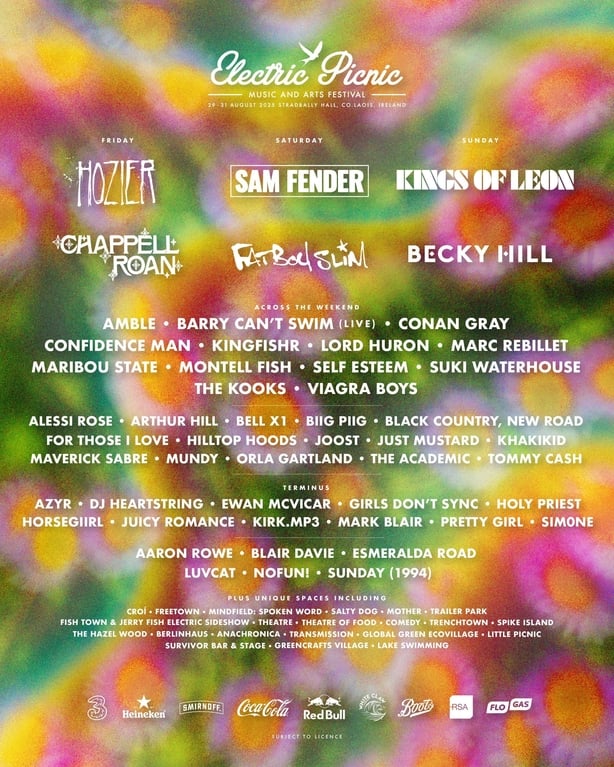 The Electric Picnic has revealed over 40 acts that will be joining the previously announced Hozier, Chappell Roan, Sam Fender, Fatboy Slim, and Kings of Leon at the festival in Stradbally, Co Laois from 29 to 31 August.