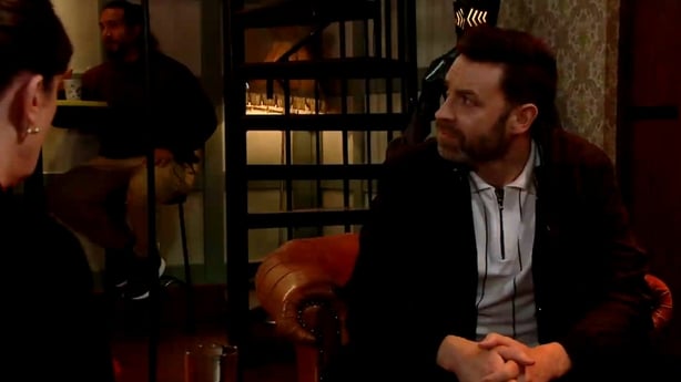 "If you knew what he was up to..." Liam tells Carol as Ger and Aidan O'Rourke watch the tense exchange in The Station.