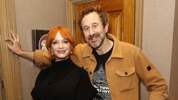 That was when Patrick Kielty was joined by Christina Hendricks and Chris O'Dowd (above), and long-time friends Aidan Quinn and Colin Farrell.