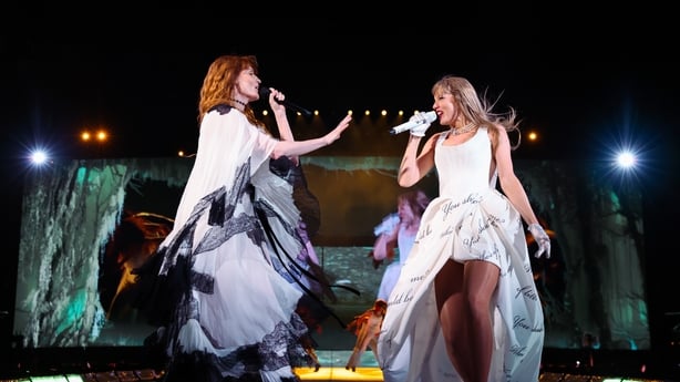 Other shots show rehearsals, the Shake It Off singer being wheeled into a show in a cleaning trolley, and her welcoming singers Ed Sheeran and Florence Welch, from Florence + The Machine, to the stage.