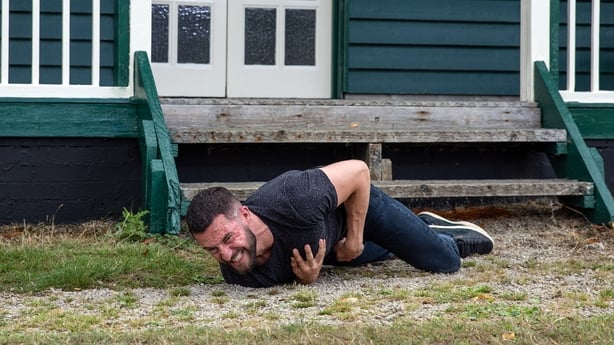 When out with playing football with Moses, Ross suddenly collapses to the ground clutching his chest in agony.