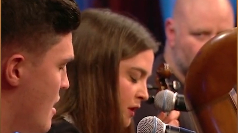 Chas Séamus agus Caoimhe, deatháir agus deirfiúr, as an Aird Mhór i gConamara an t-amhrán Anach Chuain i ndílchuimhne ar Ashling Murphy ar an Late Late Show.