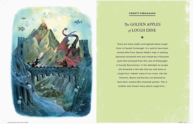 This beautifully presented gift book features a map, facts and details from locations mentioned, as well as gorgeous full-page colour art by Julia Iredale to illustrate each story. Here, we have a story from Fermanagh - The Golden Apples of Lough Erne.