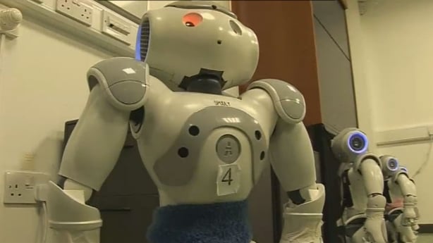 - An RTÉ News report from 2012 in which NUI Maynooth had developed a team of football playing robots, ROBO Éireann.
