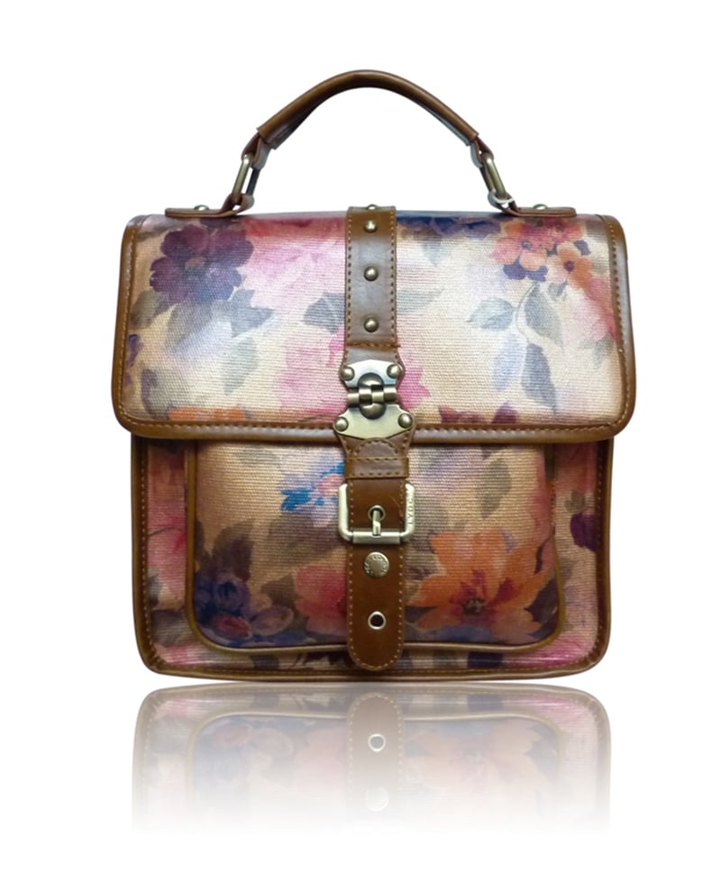 This has to be a stand-out bag for all the vintage lovers out there! This satchel has a cute shape and romantic all-over flower print, featuring a fold-over flap with buckle detail and pin fastening, a slit front pocket, a top grab handle and an adjustable strap, as well as leather look trims and antique metal hardware.