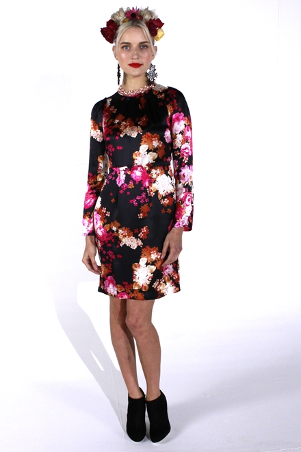 Dress Black Silk Satin dress with pink bouquet Floral Print Tara Jarmon @ Arnotts €340