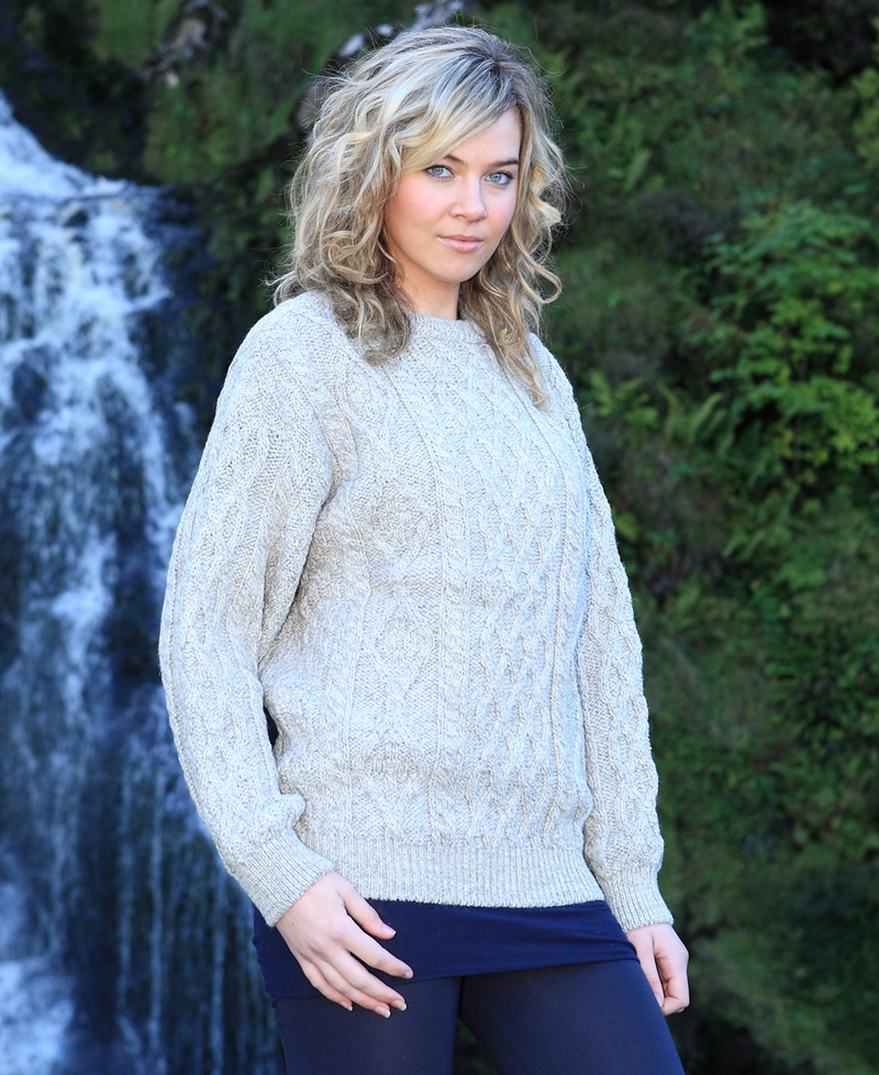 Our Aran knitwear is inspired by both current fashion trends and the rich tradition of the Aran sweater, where the pattern of the stitches tell a story and are closely related to the earth, the sea or home life. These designs were handed from mother to daughter for generations. Stitches such as a diamond twist and a honeycomb are based on the patterns of nature, while the cable, represents a fisherman’s hardy rope, and the zig-zag represents the lane ways of the Aran Islands. Many also have a religious significance, like the ladder which represents a stairway to heaven. We incorporate these distinctive patterns