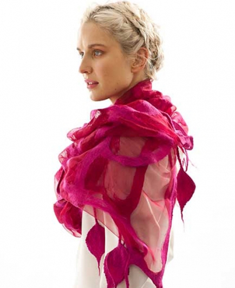 Kate Ramsey: I never thought that I would become a designer, my work came as an effect of the fascination of felted wool that I had. So when in 2006 I bought a felted bag at the Farmers Market in Barcelona, I spent a lot of time researching how felt could have been actually made. My career as a sociologist was at standstill at that stage, so I just started experimenting with different wools, suppliers, dyes and silk fabric to make textured felted silk scarves. They sold so I kept on experimenting!
